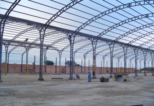Desmontaje, reparación y montaje de un galpón de 85m x 175m (12750m2) Cerramientos laterales de mampostería, fabricación y colocación de 8 portones de 5m x 4m